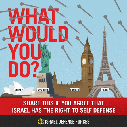 This widely shared meme released at the height of Operation Pillar of Defense in 2012 was designed by the IDF to engage Western audiences, transposing the threat of Hamas-launched missiles and mortars to their own national capitals. (IDF)
