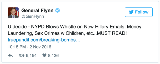 Once considered among the nation’s leading military officers, Lt. General Michael Flynn foresaw how social media would transform the world of war and politics. But after being fired from the Defense Intelligence Agency, he morphed into an adamant internet conspiracy theorist, falling victim to the very same forces he had warned against. (Michael Flynn/Twitter via TIME)